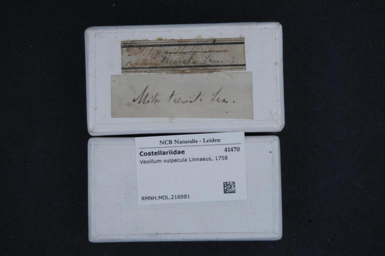 Keywords: Naturalis Biodiversity Center - RMNH.MOL.216981 1 - Vexillum vulpecula (Linnaeus, 1758) - Costellariidae - Mollusc shell.jpeg artwork Dimensions artwork Document type Costellariidae Vexillum Individual count Infraspecific epithet Infraspecific rank Institution Naturalis Kind of unit artwork Kind of unit specimen shell Life stage Medium artwork Nomenclatural code Source institute Rijksmuseum van Natuurlijke Historie Leiden Scale the width of the text on the species/QR-code label is 38 mm Occurrence ID page Neogastropoda Other fields Other versions artwork Permission license Naturalis donation CC-0 Mollusca Publication location Scientific name Vexillum vulpecula Linnaeus 1758 Scientific name authorship Linnaeus 1758 Source url http //bioportal naturalis nl Specific epithet vulpecula State or province Subject keywords artwork Subject keywords publication Title artwork Title publication Type status Uploaded with GWToolset Naturalis_Biodiversity_Center_-_RMNH MOL 216981_1_-_Vexillum_vulpecula_ Linnaeus _1758 _-_Costellariidae_-_Mollusc_shell http //medialib naturalis nl/file/id/RMNH MOL 216981_1/format/large Molluscs at Naturalis from the Rijksmuseum van Natuurlijke Historie Media donated by Naturalis Biodiversity Center Vexillum vulpecula Vexillum |