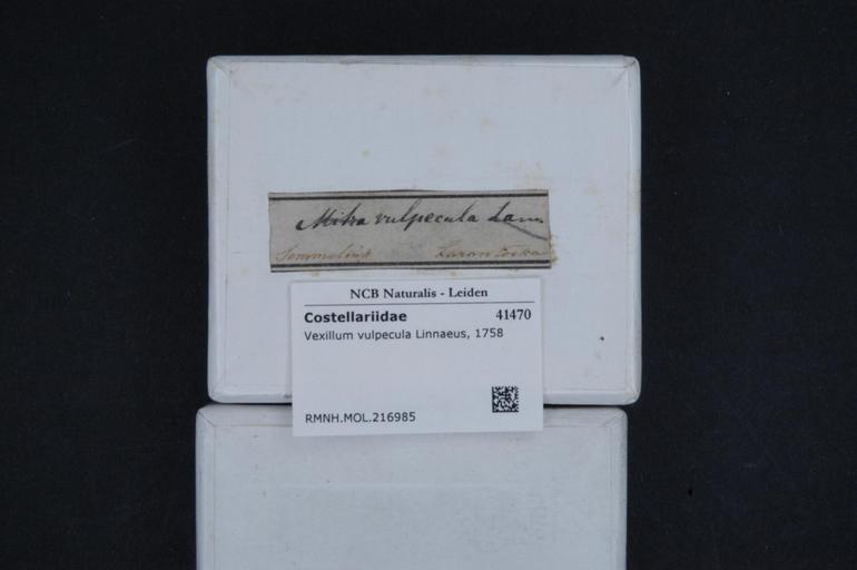 Keywords: Naturalis Biodiversity Center - RMNH.MOL.216985 1 - Vexillum vulpecula (Linnaeus, 1758) - Costellariidae - Mollusc shell.jpeg artwork Dimensions artwork Document type Costellariidae Vexillum Individual count Infraspecific epithet Infraspecific rank Institution Naturalis Kind of unit artwork Kind of unit specimen shell Life stage Medium artwork Nomenclatural code Source institute Rijksmuseum van Natuurlijke Historie Leiden Scale the width of the text on the species/QR-code label is 38 mm Occurrence ID page Neogastropoda Other fields Other versions artwork Permission license Naturalis donation CC-0 Mollusca Publication location Scientific name Vexillum vulpecula Linnaeus 1758 Scientific name authorship Linnaeus 1758 Source url http //bioportal naturalis nl Specific epithet vulpecula State or province Subject keywords artwork Subject keywords publication Title artwork Title publication Type status Uploaded with GWToolset Naturalis_Biodiversity_Center_-_RMNH MOL 216985_1_-_Vexillum_vulpecula_ Linnaeus _1758 _-_Costellariidae_-_Mollusc_shell http //medialib naturalis nl/file/id/RMNH MOL 216985_1/format/large Molluscs at Naturalis from the Rijksmuseum van Natuurlijke Historie Media donated by Naturalis Biodiversity Center Vexillum vulpecula Vexillum |