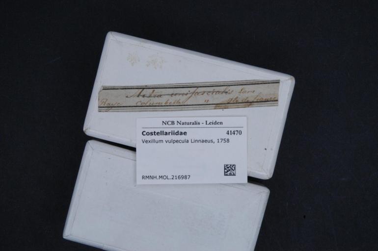 Keywords: Naturalis Biodiversity Center - RMNH.MOL.216987 1 - Vexillum vulpecula (Linnaeus, 1758) - Costellariidae - Mollusc shell.jpeg artwork Dimensions artwork Document type Costellariidae Vexillum Individual count Infraspecific epithet Infraspecific rank Institution Naturalis Kind of unit artwork Kind of unit specimen shell Life stage Medium artwork Nomenclatural code Source institute Rijksmuseum van Natuurlijke Historie Leiden Scale the width of the text on the species/QR-code label is 38 mm Occurrence ID page Neogastropoda Other fields Other versions artwork Permission license Naturalis donation CC-0 Mollusca Publication location Scientific name Vexillum vulpecula Linnaeus 1758 Scientific name authorship Linnaeus 1758 Source url http //bioportal naturalis nl Specific epithet vulpecula State or province Subject keywords artwork Subject keywords publication Title artwork Title publication Type status Uploaded with GWToolset Naturalis_Biodiversity_Center_-_RMNH MOL 216987_1_-_Vexillum_vulpecula_ Linnaeus _1758 _-_Costellariidae_-_Mollusc_shell http //medialib naturalis nl/file/id/RMNH MOL 216987_1/format/large Molluscs at Naturalis from the Rijksmuseum van Natuurlijke Historie Media donated by Naturalis Biodiversity Center Vexillum vulpecula Vexillum |