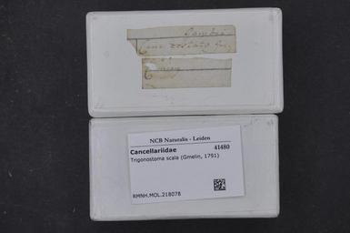 | Keywords: Naturalis Biodiversity Center - RMNH.MOL.218078 1 - Trigonostoma scala (Gmelin, 1791) - Cancellariidae - Mollusc shell.jpeg artwork Dimensions artwork Document type Cancellariidae subfamily Cancellariinae Trigonostoma Individual count Infraspecific epithet Infraspecific rank Institution Naturalis Kind of unit artwork Kind of unit specimen shell Life stage Medium artwork Nomenclatural code Source institute Rijksmuseum van Natuurlijke Historie Leiden Scale the width of the text on the species/QR-code label is 38 mm Occurrence ID page Other fields Other versions artwork Permission license Naturalis donation CC-0 Mollusca Publication location Scientific name Trigonostoma scala Gmelin 1791 Scientific name authorship Gmelin 1791 Source url http //bioportal naturalis nl Specific epithet scala State or province Subject keywords artwork Subject keywords publication Title artwork Title publication Type status Uploaded with GWToolset Naturalis_Biodiversity_Center_-_RMNH MOL 218078_1_-_Trigonostoma_scala_ Gmelin _1791 _-_Cancellariidae_-_Mollusc_shell http //medialib naturalis nl/file/id/RMNH MOL 218078_1/format/large Molluscs at Naturalis from the Rijksmuseum van Natuurlijke Historie Media donated by Naturalis Biodiversity Center Trigonostoma scala Trigonostoma |