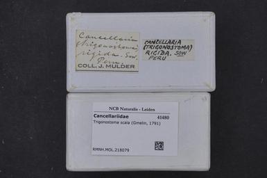 | Keywords: Naturalis Biodiversity Center - RMNH.MOL.218079 1 - Trigonostoma scala (Gmelin, 1791) - Cancellariidae - Mollusc shell.jpeg artwork Dimensions artwork Document type Cancellariidae subfamily Cancellariinae Trigonostoma Individual count Infraspecific epithet Infraspecific rank Institution Naturalis Kind of unit artwork Kind of unit specimen shell Life stage Medium artwork Nomenclatural code Source institute Rijksmuseum van Natuurlijke Historie Leiden Scale the width of the text on the species/QR-code label is 38 mm Occurrence ID page Other fields Other versions artwork Permission license Naturalis donation CC-0 Mollusca Publication location Scientific name Trigonostoma scala Gmelin 1791 Scientific name authorship Gmelin 1791 Source url http //bioportal naturalis nl Specific epithet scala State or province Subject keywords artwork Subject keywords publication Title artwork Title publication Type status Uploaded with GWToolset Naturalis_Biodiversity_Center_-_RMNH MOL 218079_1_-_Trigonostoma_scala_ Gmelin _1791 _-_Cancellariidae_-_Mollusc_shell http //medialib naturalis nl/file/id/RMNH MOL 218079_1/format/large Molluscs at Naturalis from the Rijksmuseum van Natuurlijke Historie Media donated by Naturalis Biodiversity Center Trigonostoma scala Trigonostoma |