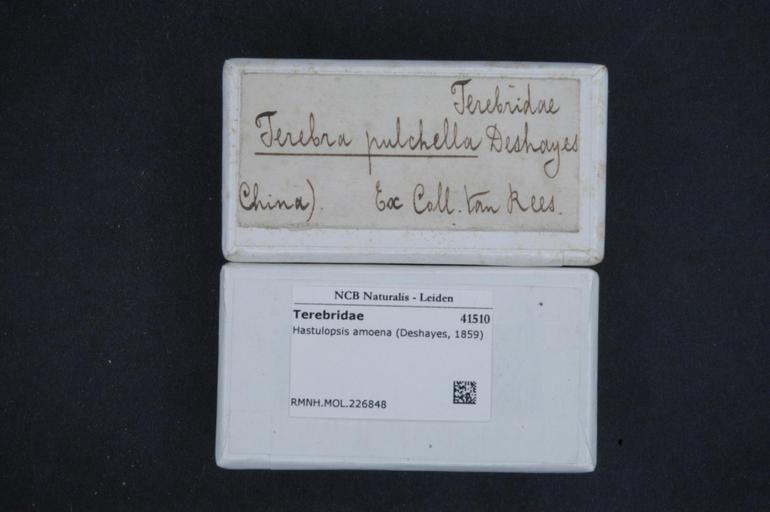 Keywords: Naturalis Biodiversity Center - RMNH.MOL.226848 1 - Hastulopsis amoena (Deshayes, 1859) - Terebridae - Mollusc shell.jpeg artwork Dimensions artwork Document type Terebridae Hastulopsis Individual count Infraspecific epithet Infraspecific rank Institution Naturalis Kind of unit artwork Kind of unit specimen shell Life stage Medium artwork Nomenclatural code Source institute Rijksmuseum van Natuurlijke Historie Leiden Scale the width of the text on the species/QR-code label is 38 mm Occurrence ID page Other fields Other versions artwork Permission license Naturalis donation CC-0 Mollusca Publication location Scientific name Hastulopsis amoena Deshayes 1859 Scientific name authorship Deshayes 1859 Source url http //bioportal naturalis nl Specific epithet amoena State or province Subject keywords artwork Subject keywords publication Title artwork Title publication Type status Uploaded with GWToolset Naturalis_Biodiversity_Center_-_RMNH MOL 226848_1_-_Hastulopsis_amoena_ Deshayes _1859 _-_Terebridae_-_Mollusc_shell http //medialib naturalis nl/file/id/RMNH MOL 226848_1/format/large Molluscs at Naturalis from the Rijksmuseum van Natuurlijke Historie Media donated by Naturalis Biodiversity Center Hastulopsis amoena Hastulopsis |