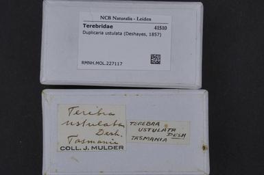 | Keywords: Naturalis Biodiversity Center - RMNH.MOL.227117 1 - Duplicaria ustulata (Deshayes, 1857) - Terebridae - Mollusc shell.jpeg artwork Dimensions artwork Document type Terebridae Duplicaria Individual count Infraspecific epithet Infraspecific rank Institution Naturalis Kind of unit artwork Kind of unit specimen shell Life stage Medium artwork Nomenclatural code Source institute Rijksmuseum van Natuurlijke Historie Leiden Scale the width of the text on the species/QR-code label is 38 mm Occurrence ID page Other fields Other versions artwork Permission license Naturalis donation CC-0 Mollusca Publication location Scientific name Duplicaria ustulata Deshayes 1857 Scientific name authorship Deshayes 1857 Source url http //bioportal naturalis nl Specific epithet ustulata State or province Subject keywords artwork Subject keywords publication Title artwork Title publication Type status Uploaded with GWToolset Naturalis_Biodiversity_Center_-_RMNH MOL 227117_1_-_Duplicaria_ustulata_ Deshayes _1857 _-_Terebridae_-_Mollusc_shell http //medialib naturalis nl/file/id/RMNH MOL 227117_1/format/large Molluscs at Naturalis from the Rijksmuseum van Natuurlijke Historie Media donated by Naturalis Biodiversity Center Duplicaria ustulata Duplicaria |