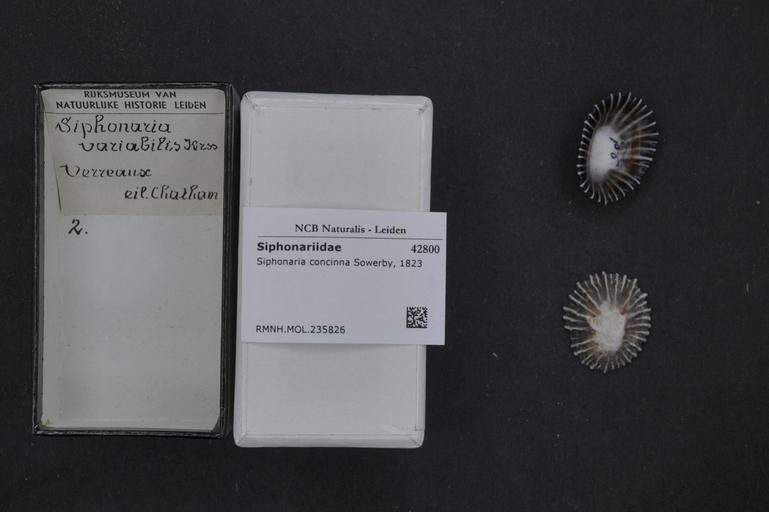 | Keywords: Naturalis Biodiversity Center - RMNH.MOL.235826 - Siphonaria concinna Sowerby, 1823 - Siphonariidae - Mollusc shell.jpeg artwork Dimensions artwork Document type Siphonariidae Siphonaria Individual count Infraspecific epithet Infraspecific rank Institution Naturalis Kind of unit artwork Kind of unit specimen shell Life stage Medium artwork Nomenclatural code Source institute Rijksmuseum van Natuurlijke Historie Leiden Scale the width of the text on the species/QR-code label is 38 mm Occurrence ID page Other fields Other versions artwork Permission license Naturalis donation CC-0 Mollusca Publication location Scientific name Siphonaria concinna Sowerby 1823 Scientific name authorship Sowerby 1823 Source url http //bioportal naturalis nl Specific epithet concinna State or province Subject keywords artwork Subject keywords publication Title artwork Title publication Type status Uploaded with GWToolset Naturalis_Biodiversity_Center_-_RMNH MOL 235826_-_Siphonaria_concinna_Sowerby _1823_-_Siphonariidae_-_Mollusc_shell http //medialib naturalis nl/file/id/RMNH MOL 235826/format/large Molluscs at Naturalis from the Rijksmuseum van Natuurlijke Historie Media donated by Naturalis Biodiversity Center Siphonaria concinna Siphonaria |