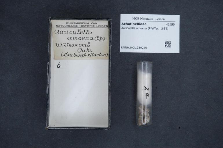 Keywords: Naturalis Biodiversity Center - RMNH.MOL.239289 - Auriculella amoena (Pfeiffer, 1855) - Achatinellidae - Mollusc shell.jpeg artwork Dimensions artwork Document type Achatinellidae subfamily Tornatellidinae Auriculella Individual count Infraspecific epithet Infraspecific rank Institution Naturalis Kind of unit artwork Kind of unit specimen shell Life stage Medium artwork Nomenclatural code Source institute Rijksmuseum van Natuurlijke Historie Leiden Scale the width of the text on the species/QR-code label is 38 mm Occurrence ID page Other fields Other versions artwork Permission license Naturalis donation CC-0 Mollusca Publication location Scientific name Auriculella amoena Pfeiffer 1855 Scientific name authorship Pfeiffer 1855 Source url http //bioportal naturalis nl Specific epithet amoena State or province Subject keywords artwork Subject keywords publication Title artwork Title publication Type status Uploaded with GWToolset Naturalis_Biodiversity_Center_-_RMNH MOL 239289_-_Auriculella_amoena_ Pfeiffer _1855 _-_Achatinellidae_-_Mollusc_shell http //medialib naturalis nl/file/id/RMNH MOL 239289/format/large Molluscs at Naturalis from the Rijksmuseum van Natuurlijke Historie Media donated by Naturalis Biodiversity Center Auriculella amoena Auriculella |