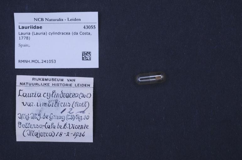 | Keywords: Naturalis Biodiversity Center - RMNH.MOL.241053 - Lauria (Lauria) cylindracea (Da Costa, 1778) - Lauriidae - Mollusc shell.jpeg artwork Dimensions artwork Document type Lauriidae Lauria Individual count Infraspecific epithet Infraspecific rank Institution Naturalis Kind of unit artwork Kind of unit specimen shell Life stage Spain Medium artwork Nomenclatural code Source institute Rijksmuseum van Natuurlijke Historie Leiden Scale the width of the text on the species/QR-code label is 38 mm Occurrence ID page Other fields Other versions artwork Permission license Naturalis donation CC-0 Mollusca Publication location Scientific name Lauria Lauria cylindracea Da Costa 1778 Scientific name authorship Da Costa 1778 Source url http //bioportal naturalis nl Specific epithet cylindracea State or province Subject keywords artwork Subject keywords publication Title artwork Title publication Type status Uploaded with GWToolset Naturalis_Biodiversity_Center_-_RMNH MOL 241053_-_Lauria_ Lauria _cylindracea_ Da_Costa _1778 _-_Lauriidae_-_Mollusc_shell http //medialib naturalis nl/file/id/RMNH MOL 241053/format/large Molluscs at Naturalis from the Rijksmuseum van Natuurlijke Historie Media donated by Naturalis Biodiversity Center Lauria cylindracea Lauria |