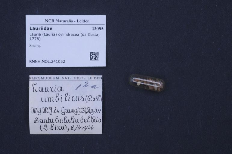 | Keywords: Naturalis Biodiversity Center - RMNH.MOL.241052 - Lauria (Lauria) cylindracea (Da Costa, 1778) - Lauriidae - Mollusc shell.jpeg artwork Dimensions artwork Document type Lauriidae Lauria Individual count Infraspecific epithet Infraspecific rank Institution Naturalis Kind of unit artwork Kind of unit specimen shell Life stage Spain Medium artwork Nomenclatural code Source institute Rijksmuseum van Natuurlijke Historie Leiden Scale the width of the text on the species/QR-code label is 38 mm Occurrence ID page Other fields Other versions artwork Permission license Naturalis donation CC-0 Mollusca Publication location Scientific name Lauria Lauria cylindracea Da Costa 1778 Scientific name authorship Da Costa 1778 Source url http //bioportal naturalis nl Specific epithet cylindracea State or province Subject keywords artwork Subject keywords publication Title artwork Title publication Type status Uploaded with GWToolset Naturalis_Biodiversity_Center_-_RMNH MOL 241052_-_Lauria_ Lauria _cylindracea_ Da_Costa _1778 _-_Lauriidae_-_Mollusc_shell http //medialib naturalis nl/file/id/RMNH MOL 241052/format/large Molluscs at Naturalis from the Rijksmuseum van Natuurlijke Historie Media donated by Naturalis Biodiversity Center Lauria cylindracea Lauria |