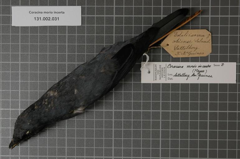 Keywords: Naturalis Biodiversity Center - RMNH.AVES.123723 1 - Coracina morio incerta (Meyer, 1874) - Campephagidae - bird skin specimen.jpeg artwork Dimensions artwork Document type Campephagidae Coracina Individual count 1 Infraspecific epithet incerta Infraspecific rank Institution Naturalis Kind of unit artwork Kind of unit specimen skin Life stage Nw Guinea Sattelberg Medium artwork Nomenclatural code Region remark n On RMNH label D N Guinea Occurrence ID page Other fields Other versions artwork Permission license Naturalis donation CC-0 Publication location Scientific name Coracina morio incerta Meyer 1874 Scientific name authorship Meyer 1874 male Source url http //bioportal naturalis nl Specific epithet morio State or province Nw Guinea Subject keywords artwork Subject keywords publication Title artwork Title publication Type status Uploaded with GWToolset Naturalis_Biodiversity_Center_-_RMNH AVES 123723_1_-_Coracina_morio_incerta_ Meyer _1874 _-_Campephagidae_-_bird_skin_specimen http //medialib naturalis nl/file/id/RMNH AVES 123723_1/format/large Media donated by Naturalis Biodiversity Center Songbird specimens at Naturalis Biodiversity Center Coracina morio incerta |