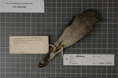 | Keywords: Naturalis Biodiversity Center - RMNH.AVES.123800 2 - Coracina fimbriata schierbrandii (Pelzeln, 1865) - Campephagidae - bird skin specimen.jpeg artwork Dimensions artwork Document type Campephagidae Coracina Individual count 1 Infraspecific epithet schierbrandii Infraspecific rank Institution Naturalis Kind of unit artwork Kind of unit specimen skin Life stage Indonesia Zd Borneo Rion Medium artwork Nomenclatural code Sex remark female lab Occurrence ID page Other fields Other versions artwork Permission license Naturalis donation CC-0 Publication location Scientific name Coracina fimbriata schierbrandii Pelzeln 1865 Scientific name authorship Pelzeln 1865 female Source url http //bioportal naturalis nl Specific epithet fimbriata State or province Zd Borneo Subject keywords artwork Subject keywords publication Title artwork Title publication Type status Uploaded with GWToolset Naturalis_Biodiversity_Center_-_RMNH AVES 123800_2_-_Coracina_fimbriata_schierbrandii_ Pelzeln _1865 _-_Campephagidae_-_bird_skin_specimen http //medialib naturalis nl/file/id/RMNH AVES 123800_2/format/large Media donated by Naturalis Biodiversity Center Songbird specimens at Naturalis Biodiversity Center Coracina fimbriata schierbrandii |