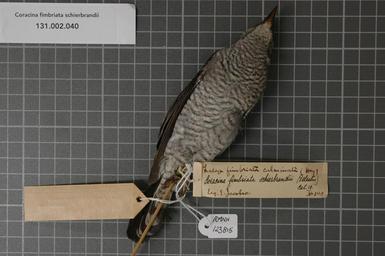 | Keywords: Naturalis Biodiversity Center - RMNH.AVES.123815 2 - Coracina fimbriata schierbrandii (Pelzeln, 1865) - Campephagidae - bird skin specimen.jpeg artwork Dimensions artwork Document type Campephagidae Coracina Individual count 1 Infraspecific epithet schierbrandii Infraspecific rank Institution Naturalis Kind of unit artwork Kind of unit specimen skin Life stage Bengkulen Rimbo Pengadang Lebong Medium artwork Nomenclatural code Occurrence ID page Other fields Other versions artwork Permission license Naturalis donation CC-0 Publication location Scientific name Coracina fimbriata schierbrandii Pelzeln 1865 Scientific name authorship Pelzeln 1865 female Source url http //bioportal naturalis nl Specific epithet fimbriata State or province Bengkulen Subject keywords artwork Subject keywords publication Title artwork Title publication Type status Uploaded with GWToolset Naturalis_Biodiversity_Center_-_RMNH AVES 123815_2_-_Coracina_fimbriata_schierbrandii_ Pelzeln _1865 _-_Campephagidae_-_bird_skin_specimen http //medialib naturalis nl/file/id/RMNH AVES 123815_2/format/large Media donated by Naturalis Biodiversity Center Songbird specimens at Naturalis Biodiversity Center Coracina fimbriata schierbrandii |