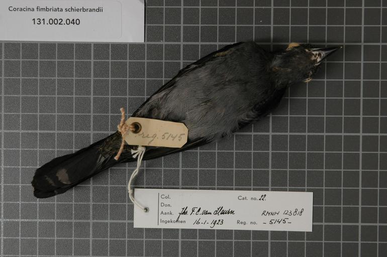| Keywords: Naturalis Biodiversity Center - RMNH.AVES.123818 2 - Coracina fimbriata schierbrandii (Pelzeln, 1865) - Campephagidae - bird skin specimen.jpeg artwork Dimensions artwork Document type Campephagidae Coracina Individual count 1 Infraspecific epithet schierbrandii Infraspecific rank Institution Naturalis Kind of unit artwork Kind of unit specimen skin Life stage Indonesia Sumatra's Oostkust Medium artwork Nomenclatural code Occurrence ID page Other fields Other versions artwork Permission license Naturalis donation CC-0 Publication location Scientific name Coracina fimbriata schierbrandii Pelzeln 1865 Scientific name authorship Pelzeln 1865 male Source url http //bioportal naturalis nl Specific epithet fimbriata State or province Sumatra's Oostkust Subject keywords artwork Subject keywords publication Title artwork Title publication Type status Uploaded with GWToolset Naturalis_Biodiversity_Center_-_RMNH AVES 123818_2_-_Coracina_fimbriata_schierbrandii_ Pelzeln _1865 _-_Campephagidae_-_bird_skin_specimen http //medialib naturalis nl/file/id/RMNH AVES 123818_2/format/large Media donated by Naturalis Biodiversity Center Songbird specimens at Naturalis Biodiversity Center Coracina fimbriata schierbrandii |