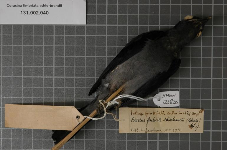 | Keywords: Naturalis Biodiversity Center - RMNH.AVES.123820 2 - Coracina fimbriata schierbrandii (Pelzeln, 1865) - Campephagidae - bird skin specimen.jpeg artwork Dimensions artwork Document type Campephagidae Coracina Individual count 1 Infraspecific epithet schierbrandii Infraspecific rank Institution Naturalis Kind of unit artwork Kind of unit specimen skin Life stage Indonesia Sumatra Pad Bovenlanden Aur Kumanis Medium artwork Nomenclatural code Occurrence ID page Other fields Other versions artwork Permission license Naturalis donation CC-0 Publication location Scientific name Coracina fimbriata schierbrandii Pelzeln 1865 Scientific name authorship Pelzeln 1865 male Source url http //bioportal naturalis nl Specific epithet fimbriata State or province Sumatra Pad Bovenlanden Subject keywords artwork Subject keywords publication Title artwork Title publication Type status Uploaded with GWToolset Naturalis_Biodiversity_Center_-_RMNH AVES 123820_2_-_Coracina_fimbriata_schierbrandii_ Pelzeln _1865 _-_Campephagidae_-_bird_skin_specimen http //medialib naturalis nl/file/id/RMNH AVES 123820_2/format/large Media donated by Naturalis Biodiversity Center Songbird specimens at Naturalis Biodiversity Center Coracina fimbriata schierbrandii |