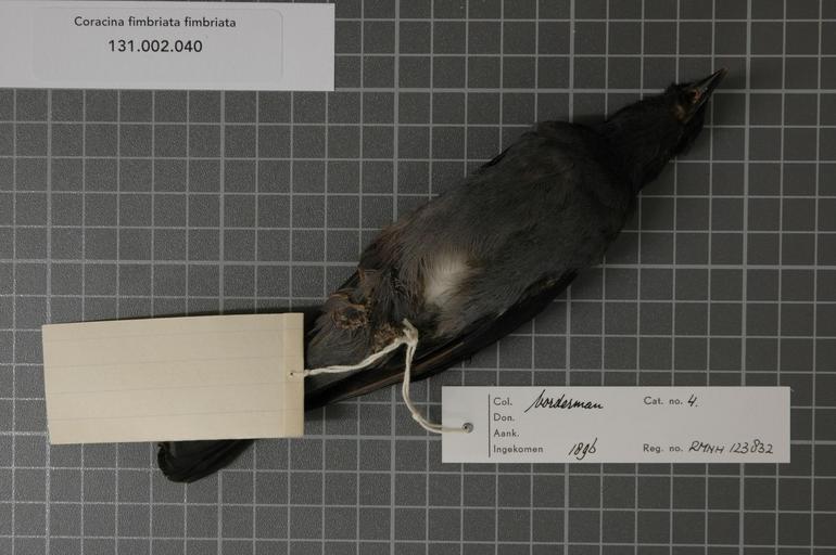 | Keywords: Naturalis Biodiversity Center - RMNH.AVES.123832 2 - Coracina fimbriata fimbriata (Temminck, 1824) - Campephagidae - bird skin specimen.jpeg artwork Dimensions artwork Document type Campephagidae Coracina Individual count 1 Infraspecific epithet fimbriata Infraspecific rank Institution Naturalis Kind of unit artwork Kind of unit specimen skin Life stage Indonesia W Java Salak Medium artwork Nomenclatural code Sex remark male lab Occurrence ID page Other fields Other versions artwork Permission license Naturalis donation CC-0 Publication location Scientific name Coracina fimbriata fimbriata Temminck 1824 Scientific name authorship Temminck 1824 male Source url http //bioportal naturalis nl Specific epithet fimbriata State or province W Java Subject keywords artwork Subject keywords publication Title artwork Title publication Type status Uploaded with GWToolset Naturalis_Biodiversity_Center_-_RMNH AVES 123832_2_-_Coracina_fimbriata_fimbriata_ Temminck _1824 _-_Campephagidae_-_bird_skin_specimen http //medialib naturalis nl/file/id/RMNH AVES 123832_2/format/large Media donated by Naturalis Biodiversity Center Songbird specimens at Naturalis Biodiversity Center Coracina fimbriata fimbriata |
