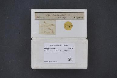 | Keywords: Naturalis Biodiversity Center - RMNH.MOL.286567 1 - Triodopsis tridentata (Say, 1816) - Polygyridae - Mollusc shell.jpeg artwork Dimensions artwork Document type Polygyridae subfamily Triodopsinae Triodopsis Individual count Infraspecific epithet Infraspecific rank Institution Naturalis Kind of unit artwork Kind of unit specimen shell Life stage Medium artwork Nomenclatural code Source institute Rijksmuseum van Natuurlijke Historie Leiden Scale the width of the text on the species/QR-code label is 38 mm Occurrence ID page Other fields Other versions artwork Permission license Naturalis donation CC-0 Mollusca Publication location Scientific name Triodopsis tridentata Say 1816 Scientific name authorship Say 1816 Source url http //bioportal naturalis nl Specific epithet tridentata State or province Subject keywords artwork Subject keywords publication Title artwork Title publication Type status Uploaded with GWToolset Naturalis_Biodiversity_Center_-_RMNH MOL 286567_1_-_Triodopsis_tridentata_ Say _1816 _-_Polygyridae_-_Mollusc_shell http //medialib naturalis nl/file/id/RMNH MOL 286567_1/format/large Molluscs at Naturalis from the Rijksmuseum van Natuurlijke Historie Media donated by Naturalis Biodiversity Center Triodopsis tridentata Triodopsis |
