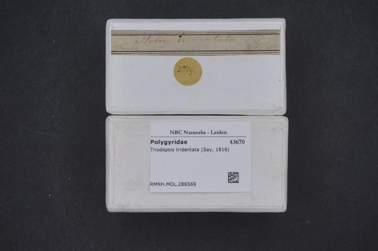 Keywords: Naturalis Biodiversity Center - RMNH.MOL.286569 1 - Triodopsis tridentata (Say, 1816) - Polygyridae - Mollusc shell.jpeg artwork Dimensions artwork Document type Polygyridae subfamily Triodopsinae Triodopsis Individual count Infraspecific epithet Infraspecific rank Institution Naturalis Kind of unit artwork Kind of unit specimen shell Life stage Medium artwork Nomenclatural code Source institute Rijksmuseum van Natuurlijke Historie Leiden Scale the width of the text on the species/QR-code label is 38 mm Occurrence ID page Other fields Other versions artwork Permission license Naturalis donation CC-0 Mollusca Publication location Scientific name Triodopsis tridentata Say 1816 Scientific name authorship Say 1816 Source url http //bioportal naturalis nl Specific epithet tridentata State or province Subject keywords artwork Subject keywords publication Title artwork Title publication Type status Uploaded with GWToolset Naturalis_Biodiversity_Center_-_RMNH MOL 286569_1_-_Triodopsis_tridentata_ Say _1816 _-_Polygyridae_-_Mollusc_shell http //medialib naturalis nl/file/id/RMNH MOL 286569_1/format/large Molluscs at Naturalis from the Rijksmuseum van Natuurlijke Historie Media donated by Naturalis Biodiversity Center Triodopsis tridentata Triodopsis |