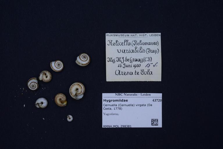 | Keywords: Naturalis Biodiversity Center - RMNH.MOL.298381 - Cernuella (Cernuella) virgata (Da Costa, 1778) - Hygromiidae - Mollusc shell.jpeg artwork Dimensions artwork Document type Hygromiidae subfamily Hygromiinae Cernuella Individual count Infraspecific epithet Infraspecific rank Institution Naturalis Kind of unit artwork Kind of unit specimen shell Life stage Yugoslavia Medium artwork Nomenclatural code Source institute Rijksmuseum van Natuurlijke Historie Leiden Scale the width of the text on the species/QR-code label is 38 mm Occurrence ID page Other fields Other versions artwork Permission license Naturalis donation CC-0 Mollusca Publication location Scientific name Cernuella Cernuella virgata Da Costa 1778 Scientific name authorship Da Costa 1778 Source url http //bioportal naturalis nl Specific epithet virgata State or province Subject keywords artwork Subject keywords publication Title artwork Title publication Type status Uploaded with GWToolset Naturalis_Biodiversity_Center_-_RMNH MOL 298381_-_Cernuella_ Cernuella _virgata_ Da_Costa _1778 _-_Hygromiidae_-_Mollusc_shell http //medialib naturalis nl/file/id/RMNH MOL 298381/format/large Media donated by Naturalis Biodiversity Center Molluscs at Naturalis from the Rijksmuseum van Natuurlijke Historie Cernuella virgata Cernuella |