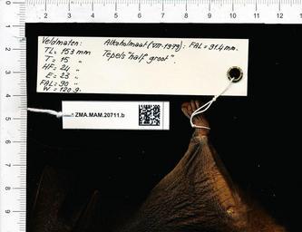 | Keywords: Naturalis Biodiversity Center - ZMA.MAM.20711.b lab - Rousettus aegyptiacus leachii - skin.jpeg artwork Dimensions artwork Document type Rousettus Individual count 1 Infraspecific epithet leachii Infraspecific rank Institution Naturalis Kind of unit artwork Kind of unit specimen skin Life stage Bat's Cave sea level; 5 0 km S 7 5 km W of Nahoon Point 33º00'S 27º56'E East London District South Africa Medium artwork Nomenclatural code Occurrence ID page Other fields Other versions artwork Permission license Naturalis donation CC-0 Publication location Scientific name Rousettus aegyptiacus leachii Scientific name authorship female Source url http //bioportal naturalis nl Specific epithet aegyptiacus State or province Subject keywords artwork Subject keywords publication Title artwork Title publication Type status Uploaded with GWToolset Naturalis_Biodiversity_Center_-_ZMA MAM 20711 b_lab_-_Rousettus_aegyptiacus_leachii_-_skin http //medialib naturalis nl/file/id/ZMA MAM 20711 b_lab/format/large Mammals at Naturalis from the Zoölogisch Museum Amsterdam Media donated by Naturalis Biodiversity Center Rousettus aegyptiacus Rousettus |