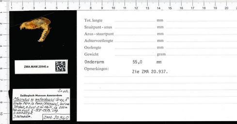 | Keywords: Naturalis Biodiversity Center - ZMA.MAM.20940.a lat - Macrotus waterhousii - skull.jpeg artwork Dimensions artwork Document type Macrotus Individual count 1 Infraspecific epithet Infraspecific rank Institution Naturalis Kind of unit artwork Kind of unit specimen skull Life stage Grotte Père la Ponce Roseaux O van Jérémie N kust van Z W Haïti; ca 300 m van de kust Medium artwork Nomenclatural code Occurrence ID page Other fields Other versions artwork Permission license Naturalis donation CC-0 Publication location Scientific name Macrotus waterhousii Scientific name authorship male Source url http //bioportal naturalis nl Specific epithet waterhousii State or province Subject keywords artwork Subject keywords publication Title artwork Title publication Type status Uploaded with GWToolset Naturalis_Biodiversity_Center_-_ZMA MAM 20940 a_lat_-_Macrotus_waterhousii_-_skull http //medialib naturalis nl/file/id/ZMA MAM 20940 a_lat/format/large Mammals at Naturalis from the Zoölogisch Museum Amsterdam Media donated by Naturalis Biodiversity Center Macrotus waterhousii Macrotus |