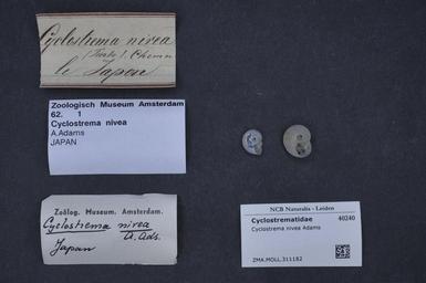 | Keywords: Naturalis Biodiversity Center - ZMA.MOLL.311182 - Cyclostrema nivea Adams - Cyclostrematidae - Mollusc shell.jpeg artwork Dimensions artwork Document type Cyclostrematidae Cyclostrema Individual count Infraspecific epithet Infraspecific rank Institution Naturalis Kind of unit artwork Kind of unit specimen shell Life stage Medium artwork Nomenclatural code Verbatim collectienaamSource institute Zoölogisch Museum Amsterdam Scale the width of the text on the species/QR-code label is 38 mm Occurrence ID page Other fields Other versions artwork Permission license Naturalis donation CC-0 Mollusca Publication location Scientific name Cyclostrema nivea Adams Scientific name authorship Source url http //bioportal naturalis nl Specific epithet State or province Subject keywords artwork Subject keywords publication Title artwork Title publication Type status Uploaded with GWToolset Naturalis_Biodiversity_Center_-_ZMA MOLL 311182_-_Cyclostrema_nivea_Adams_-_Cyclostrematidae_-_Mollusc_shell http //medialib naturalis nl/file/id/ZMA MOLL 311182/format/large Media donated by Naturalis Biodiversity Center Molluscs at Naturalis from the Zoölogisch Museum Amsterdam Cyclostrema Cyclostrema |