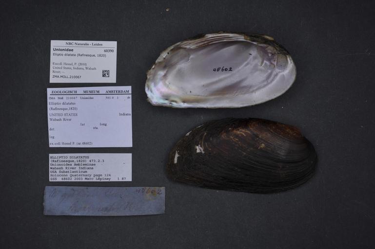 | Keywords: Naturalis Biodiversity Center - ZMA.MOLL.210067 - Elliptio dilatata (Rafinesque, 1820) - Unionidae - Mollusc shell.jpeg artwork Dimensions artwork Document type Unionidae subfamily Ambleminae Elliptio Individual count Infraspecific epithet Infraspecific rank Institution Naturalis Kind of unit artwork Kind of unit specimen shell Life stage United States Indiana Wabash River Medium artwork Nomenclatural code Scale the width of the text on the species/QR-code label is 38 mm Occurrence ID page Other fields Other versions artwork Permission license Naturalis donation CC-0 Mollusca Publication location Scientific name Elliptio dilatata Rafinesque 1820 Scientific name authorship Rafinesque 1820 Source url http //bioportal naturalis nl Specific epithet dilatata State or province Indiana Subject keywords artwork Subject keywords publication Title artwork Title publication Type status Uploaded with GWToolset Naturalis_Biodiversity_Center_-_ZMA MOLL 210067_-_Elliptio_dilatata_ Rafinesque _1820 _-_Unionidae_-_Mollusc_shell http //medialib naturalis nl/file/id/ZMA MOLL 210067/format/large Media donated by Naturalis Biodiversity Center Molluscs at Naturalis from the Zoölogisch Museum Amsterdam Elliptio dilatata Elliptio |