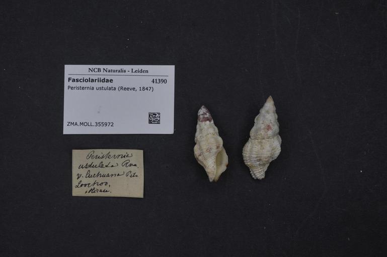 Keywords: Naturalis Biodiversity Center - ZMA.MOLL.355972 - Peristernia ustulata (Reeve, 1847) - Fasciolariidae - Mollusc shell.jpeg artwork Dimensions artwork Document type Fasciolariidae subfamily Peristerniinae Peristernia Individual count Infraspecific epithet Infraspecific rank Institution Naturalis Kind of unit artwork Kind of unit specimen shell Life stage Medium artwork Nomenclatural code Source institute Zoölogisch Museum Amsterdam Scale the width of the text on the species/QR-code label is 38 mm Occurrence ID page Other fields Other versions artwork Permission license Naturalis donation CC-0 Mollusca Publication location Scientific name Peristernia ustulata Reeve 1847 Scientific name authorship Reeve 1847 Source url http //bioportal naturalis nl Specific epithet ustulata State or province Subject keywords artwork Subject keywords publication Title artwork Title publication Type status Uploaded with GWToolset Naturalis_Biodiversity_Center_-_ZMA MOLL 355972_-_Peristernia_ustulata_ Reeve _1847 _-_Fasciolariidae_-_Mollusc_shell http //medialib naturalis nl/file/id/ZMA MOLL 355972/format/large Media donated by Naturalis Biodiversity Center Molluscs at Naturalis from the Zoölogisch Museum Amsterdam Peristernia ustulata Peristernia |