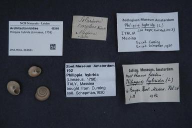 | Keywords: Naturalis Biodiversity Center - ZMA.MOLL.364861 - Philippia hybrida (Linnaeus, 1758) - Architectonicidae - Mollusc shell.jpeg artwork Dimensions artwork Document type Architectonicidae Philippia Individual count Infraspecific epithet Infraspecific rank Institution Naturalis Kind of unit artwork Kind of unit specimen shell Life stage Medium artwork Nomenclatural code Source institute Zoölogisch Museum Amsterdam Scale the width of the text on the species/QR-code label is 38 mm Occurrence ID page Other fields Other versions artwork Permission license Naturalis donation CC-0 Mollusca Publication location Scientific name Philippia hybrida Linnaeus 1758 Scientific name authorship Linnaeus 1758 Source url http //bioportal naturalis nl Specific epithet hybrida State or province Subject keywords artwork Subject keywords publication Title artwork Title publication Type status Uploaded with GWToolset Naturalis_Biodiversity_Center_-_ZMA MOLL 364861_-_Philippia_hybrida_ Linnaeus _1758 _-_Architectonicidae_-_Mollusc_shell http //medialib naturalis nl/file/id/ZMA MOLL 364861/format/large Media donated by Naturalis Biodiversity Center Molluscs at Naturalis from the Zoölogisch Museum Amsterdam Philippia hybrida Philippia |