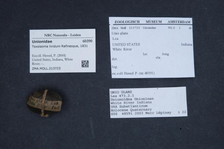 | Keywords: Naturalis Biodiversity Center - ZMA.MOLL.213723 - Toxolasma lividum Rafinesque, 1831 - Unionidae - Mollusc shell.jpeg artwork Dimensions artwork Document type Unionidae Toxolasma Individual count Infraspecific epithet Infraspecific rank Institution Naturalis Kind of unit artwork Kind of unit specimen shell Life stage United States Indiana White River Medium artwork Nomenclatural code Scale the width of the text on the species/QR-code label is 38 mm Occurrence ID page Other fields Other versions artwork Permission license Naturalis donation CC-0 Mollusca Publication location Scientific name Toxolasma lividum Rafinesque 1831 Scientific name authorship Rafinesque 1831 Source url http //bioportal naturalis nl Specific epithet lividum State or province Indiana Subject keywords artwork Subject keywords publication Title artwork Title publication Type status Uploaded with GWToolset Naturalis_Biodiversity_Center_-_ZMA MOLL 213723_-_Toxolasma_lividum_Rafinesque _1831_-_Unionidae_-_Mollusc_shell http //medialib naturalis nl/file/id/ZMA MOLL 213723/format/large Media donated by Naturalis Biodiversity Center Molluscs at Naturalis from the Zoölogisch Museum Amsterdam Toxolasma lividum Toxolasma |