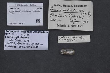 | Keywords: Naturalis Biodiversity Center - ZMA.MOLL.374345 - Lauria (Lauria) cylindracea (Da Costa, 1778) - Lauriidae - Mollusc shell.jpeg artwork Dimensions artwork Document type Lauriidae Lauria Individual count Infraspecific epithet Infraspecific rank Institution Naturalis Kind of unit artwork Kind of unit specimen shell Life stage Medium artwork Nomenclatural code Source institute Rijksmuseum van Natuurlijke Historie Leiden Scale the width of the text on the species/QR-code label is 38 mm Occurrence ID page Other fields Other versions artwork Permission license Naturalis donation CC-0 Mollusca Publication location Scientific name Lauria Lauria cylindracea Da Costa 1778 Scientific name authorship Da Costa 1778 Source url http //bioportal naturalis nl Specific epithet cylindracea State or province Subject keywords artwork Subject keywords publication Title artwork Title publication Type status Uploaded with GWToolset Naturalis_Biodiversity_Center_-_ZMA MOLL 374345_-_Lauria_ Lauria _cylindracea_ Da_Costa _1778 _-_Lauriidae_-_Mollusc_shell http //medialib naturalis nl/file/id/ZMA MOLL 374345/format/large Molluscs at Naturalis from the Zoölogisch Museum Amsterdam Media donated by Naturalis Biodiversity Center Lauria cylindracea Lauria |