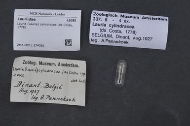 | Keywords: Naturalis Biodiversity Center - ZMA.MOLL.374361 - Lauria (Lauria) cylindracea (Da Costa, 1778) - Lauriidae - Mollusc shell.jpeg artwork Dimensions artwork Document type Lauriidae Lauria Individual count Infraspecific epithet Infraspecific rank Institution Naturalis Kind of unit artwork Kind of unit specimen shell Life stage Medium artwork Nomenclatural code Source institute Rijksmuseum van Natuurlijke Historie Leiden Scale the width of the text on the species/QR-code label is 38 mm Occurrence ID page Other fields Other versions artwork Permission license Naturalis donation CC-0 Mollusca Publication location Scientific name Lauria Lauria cylindracea Da Costa 1778 Scientific name authorship Da Costa 1778 Source url http //bioportal naturalis nl Specific epithet cylindracea State or province Subject keywords artwork Subject keywords publication Title artwork Title publication Type status Uploaded with GWToolset Naturalis_Biodiversity_Center_-_ZMA MOLL 374361_-_Lauria_ Lauria _cylindracea_ Da_Costa _1778 _-_Lauriidae_-_Mollusc_shell http //medialib naturalis nl/file/id/ZMA MOLL 374361/format/large Molluscs at Naturalis from the Zoölogisch Museum Amsterdam Media donated by Naturalis Biodiversity Center Lauria cylindracea Lauria |