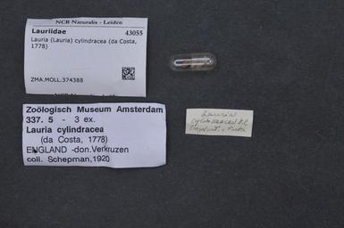 | Keywords: Naturalis Biodiversity Center - ZMA.MOLL.374388 - Lauria (Lauria) cylindracea (Da Costa, 1778) - Lauriidae - Mollusc shell.jpeg artwork Dimensions artwork Document type Lauriidae Lauria Individual count Infraspecific epithet Infraspecific rank Institution Naturalis Kind of unit artwork Kind of unit specimen shell Life stage Medium artwork Nomenclatural code Source institute Rijksmuseum van Natuurlijke Historie Leiden Scale the width of the text on the species/QR-code label is 38 mm Occurrence ID page Other fields Other versions artwork Permission license Naturalis donation CC-0 Mollusca Publication location Scientific name Lauria Lauria cylindracea Da Costa 1778 Scientific name authorship Da Costa 1778 Source url http //bioportal naturalis nl Specific epithet cylindracea State or province Subject keywords artwork Subject keywords publication Title artwork Title publication Type status Uploaded with GWToolset Naturalis_Biodiversity_Center_-_ZMA MOLL 374388_-_Lauria_ Lauria _cylindracea_ Da_Costa _1778 _-_Lauriidae_-_Mollusc_shell http //medialib naturalis nl/file/id/ZMA MOLL 374388/format/large Molluscs at Naturalis from the Zoölogisch Museum Amsterdam Media donated by Naturalis Biodiversity Center Lauria cylindracea Lauria |