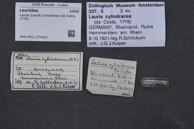 | Keywords: Naturalis Biodiversity Center - ZMA.MOLL.374402 - Lauria (Lauria) cylindracea (Da Costa, 1778) - Lauriidae - Mollusc shell.jpeg artwork Dimensions artwork Document type Lauriidae Lauria Individual count Infraspecific epithet Infraspecific rank Institution Naturalis Kind of unit artwork Kind of unit specimen shell Life stage Medium artwork Nomenclatural code Source institute Rijksmuseum van Natuurlijke Historie Leiden Scale the width of the text on the species/QR-code label is 38 mm Occurrence ID page Other fields Other versions artwork Permission license Naturalis donation CC-0 Mollusca Publication location Scientific name Lauria Lauria cylindracea Da Costa 1778 Scientific name authorship Da Costa 1778 Source url http //bioportal naturalis nl Specific epithet cylindracea State or province Subject keywords artwork Subject keywords publication Title artwork Title publication Type status Uploaded with GWToolset Naturalis_Biodiversity_Center_-_ZMA MOLL 374402_-_Lauria_ Lauria _cylindracea_ Da_Costa _1778 _-_Lauriidae_-_Mollusc_shell http //medialib naturalis nl/file/id/ZMA MOLL 374402/format/large Molluscs at Naturalis from the Zoölogisch Museum Amsterdam Media donated by Naturalis Biodiversity Center Lauria cylindracea Lauria |