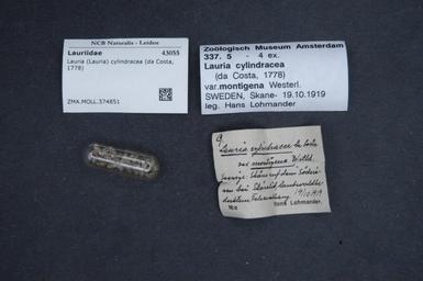| Keywords: Naturalis Biodiversity Center - ZMA.MOLL.374851 - Lauria (Lauria) cylindracea (Da Costa, 1778) - Lauriidae - Mollusc shell.jpeg artwork Dimensions artwork Document type Lauriidae Lauria Individual count Infraspecific epithet Infraspecific rank Institution Naturalis Kind of unit artwork Kind of unit specimen shell Life stage Medium artwork Nomenclatural code Source institute Rijksmuseum van Natuurlijke Historie Leiden Scale the width of the text on the species/QR-code label is 38 mm Occurrence ID page Other fields Other versions artwork Permission license Naturalis donation CC-0 Mollusca Publication location Scientific name Lauria Lauria cylindracea Da Costa 1778 Scientific name authorship Da Costa 1778 Source url http //bioportal naturalis nl Specific epithet cylindracea State or province Subject keywords artwork Subject keywords publication Title artwork Title publication Type status Uploaded with GWToolset Naturalis_Biodiversity_Center_-_ZMA MOLL 374851_-_Lauria_ Lauria _cylindracea_ Da_Costa _1778 _-_Lauriidae_-_Mollusc_shell http //medialib naturalis nl/file/id/ZMA MOLL 374851/format/large Molluscs at Naturalis from the Zoölogisch Museum Amsterdam Media donated by Naturalis Biodiversity Center Lauria cylindracea Lauria |