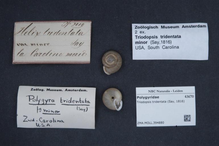 Keywords: Naturalis Biodiversity Center - ZMA.MOLL.394880 - Triodopsis tridentata (Say, 1816) - Polygyridae - Mollusc shell.jpeg artwork Dimensions artwork Document type Polygyridae subfamily Triodopsinae Triodopsis Individual count Infraspecific epithet Infraspecific rank Institution Naturalis Kind of unit artwork Kind of unit specimen shell Life stage Medium artwork Nomenclatural code Source institute Rijksmuseum van Natuurlijke Historie Leiden Scale the width of the text on the species/QR-code label is 38 mm Occurrence ID page Other fields Other versions artwork Permission license Naturalis donation CC-0 Mollusca Publication location Scientific name Triodopsis tridentata Say 1816 Scientific name authorship Say 1816 Source url http //bioportal naturalis nl Specific epithet tridentata State or province Subject keywords artwork Subject keywords publication Title artwork Title publication Type status Uploaded with GWToolset Naturalis_Biodiversity_Center_-_ZMA MOLL 394880_-_Triodopsis_tridentata_ Say _1816 _-_Polygyridae_-_Mollusc_shell http //medialib naturalis nl/file/id/ZMA MOLL 394880/format/large Molluscs at Naturalis from the Zoölogisch Museum Amsterdam Media donated by Naturalis Biodiversity Center Triodopsis tridentata Triodopsis |