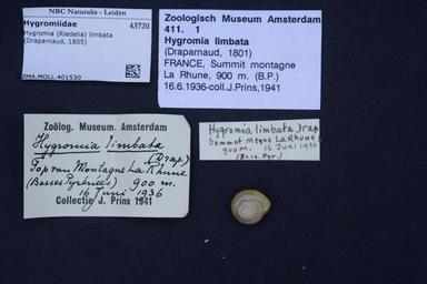 | Keywords: Naturalis Biodiversity Center - ZMA.MOLL.401530 - Hygromia (Riedelia) limbata (Draparnaud, 1805) - Hygromiidae - Mollusc shell.jpeg artwork Dimensions artwork Document type Hygromiidae subfamily Hygromiinae Hygromia Individual count Infraspecific epithet Infraspecific rank Institution Naturalis Kind of unit artwork Kind of unit specimen shell Life stage Medium artwork Nomenclatural code Source institute Rijksmuseum van Natuurlijke Historie Leiden Scale the width of the text on the species/QR-code label is 38 mm Occurrence ID page Other fields Other versions artwork Permission license Naturalis donation CC-0 Mollusca Publication location Scientific name Hygromia Riedelia limbata Draparnaud 1805 Scientific name authorship Draparnaud 1805 Source url http //bioportal naturalis nl Specific epithet limbata State or province Subject keywords artwork Subject keywords publication Title artwork Title publication Type status Uploaded with GWToolset Naturalis_Biodiversity_Center_-_ZMA MOLL 401530_-_Hygromia_ Riedelia _limbata_ Draparnaud _1805 _-_Hygromiidae_-_Mollusc_shell http //medialib naturalis nl/file/id/ZMA MOLL 401530/format/large Molluscs at Naturalis from the Zoölogisch Museum Amsterdam Media donated by Naturalis Biodiversity Center Hygromia limbata Hygromia |