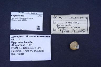 | Keywords: Naturalis Biodiversity Center - ZMA.MOLL.401565 - Hygromia (Riedelia) limbata (Draparnaud, 1805) - Hygromiidae - Mollusc shell.jpeg artwork Dimensions artwork Document type Hygromiidae subfamily Hygromiinae Hygromia Individual count Infraspecific epithet Infraspecific rank Institution Naturalis Kind of unit artwork Kind of unit specimen shell Life stage Medium artwork Nomenclatural code Source institute Rijksmuseum van Natuurlijke Historie Leiden Scale the width of the text on the species/QR-code label is 38 mm Occurrence ID page Other fields Other versions artwork Permission license Naturalis donation CC-0 Mollusca Publication location Scientific name Hygromia Riedelia limbata Draparnaud 1805 Scientific name authorship Draparnaud 1805 Source url http //bioportal naturalis nl Specific epithet limbata State or province Subject keywords artwork Subject keywords publication Title artwork Title publication Type status Uploaded with GWToolset Naturalis_Biodiversity_Center_-_ZMA MOLL 401565_-_Hygromia_ Riedelia _limbata_ Draparnaud _1805 _-_Hygromiidae_-_Mollusc_shell http //medialib naturalis nl/file/id/ZMA MOLL 401565/format/large Molluscs at Naturalis from the Zoölogisch Museum Amsterdam Media donated by Naturalis Biodiversity Center Hygromia limbata Hygromia |