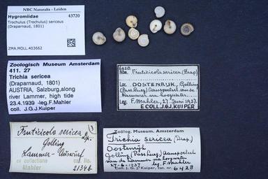 | Keywords: Naturalis Biodiversity Center - ZMA.MOLL.403662 - Trochulus (Trochulus) sericeus (Draparnaud, 1801) - Hygromiidae - Mollusc shell.jpeg artwork Dimensions artwork Document type Hygromiidae Trochulus Individual count Infraspecific epithet Infraspecific rank Institution Naturalis Kind of unit artwork Kind of unit specimen shell Life stage Medium artwork Nomenclatural code Source institute Rijksmuseum van Natuurlijke Historie Leiden Scale the width of the text on the species/QR-code label is 38 mm Occurrence ID page Other fields Other versions artwork Permission license Naturalis donation CC-0 Mollusca Publication location Scientific name Trochulus Trochulus sericeus Draparnaud 1801 Scientific name authorship Draparnaud 1801 Source url http //bioportal naturalis nl Specific epithet sericeus State or province Subject keywords artwork Subject keywords publication Title artwork Title publication Type status Uploaded with GWToolset Naturalis_Biodiversity_Center_-_ZMA MOLL 403662_-_Trochulus_ Trochulus _sericeus_ Draparnaud _1801 _-_Hygromiidae_-_Mollusc_shell http //medialib naturalis nl/file/id/ZMA MOLL 403662/format/large Molluscs at Naturalis from the Zoölogisch Museum Amsterdam Media donated by Naturalis Biodiversity Center Trochulus sericeus Trochulus |