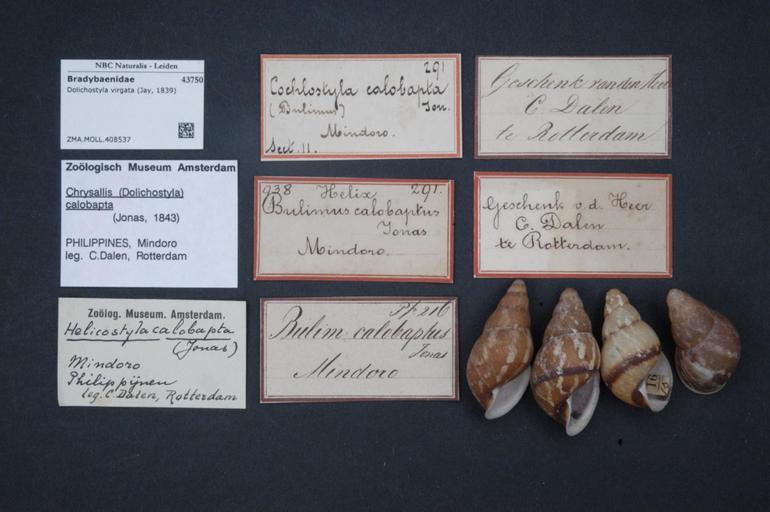 | Keywords: Naturalis Biodiversity Center - ZMA.MOLL.408537 - Dolichostyla virgata (Jay, 1839) - Bradybaenidae - Mollusc shell.jpeg artwork Dimensions artwork Document type Bradybaenidae Dolichostyla Individual count Infraspecific epithet Infraspecific rank Institution Naturalis Kind of unit artwork Kind of unit specimen shell Life stage Medium artwork Nomenclatural code Source institute Zoölogisch Museum Amsterdam Scale the width of the text on the species/QR-code label is 38 mm Occurrence ID page Other fields Other versions artwork Permission license Naturalis donation CC-0 Mollusca Publication location Scientific name Dolichostyla virgata Jay 1839 Scientific name authorship Jay 1839 Source url http //bioportal naturalis nl Specific epithet virgata State or province Subject keywords artwork Subject keywords publication Title artwork Title publication Type status Uploaded with GWToolset Naturalis_Biodiversity_Center_-_ZMA MOLL 408537_-_Dolichostyla_virgata_ Jay _1839 _-_Bradybaenidae_-_Mollusc_shell http //medialib naturalis nl/file/id/ZMA MOLL 408537/format/large Molluscs at Naturalis from the Zoölogisch Museum Amsterdam Media donated by Naturalis Biodiversity Center Dolichostyla virgata Dolichostyla |
