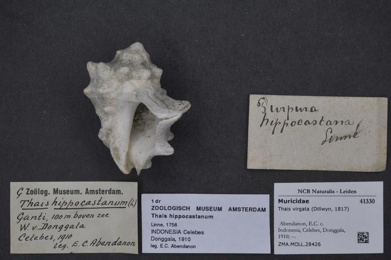 | Keywords: Naturalis Biodiversity Center - ZMA.MOLL.28426 - Thais virgata (Dillwyn, 1817) - Muricidae - Mollusc shell.jpeg artwork Dimensions artwork Document type Muricidae subfamily Rapaninae Thais Individual count Infraspecific epithet Infraspecific rank Institution Naturalis Kind of unit artwork Kind of unit specimen shell Life stage Indonesia Celebes Donggala 1910 Medium artwork Nomenclatural code Scale the width of the text on the species/QR-code label is 38 mm Occurrence ID page Neogastropoda Other fields Other versions artwork Permission license Naturalis donation CC-0 Mollusca Publication location Scientific name Thais virgata Dillwyn 1817 Scientific name authorship Dillwyn 1817 Source url http //bioportal naturalis nl Specific epithet virgata State or province Celebes Subject keywords artwork Subject keywords publication Title artwork Title publication Type status Uploaded with GWToolset Naturalis_Biodiversity_Center_-_ZMA MOLL 28426_-_Thais_virgata_ Dillwyn _1817 _-_Muricidae_-_Mollusc_shell http //medialib naturalis nl/file/id/ZMA MOLL 28426/format/large Media donated by Naturalis Biodiversity Center Molluscs at Naturalis from the Zoölogisch Museum Amsterdam Thais virgata |