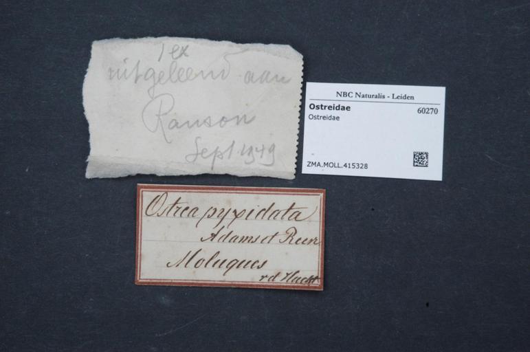 | Keywords: Naturalis Biodiversity Center - ZMA.MOLL.415328 - Ostreidae - Ostreidae - Mollusc shell.jpeg artwork Dimensions artwork Document type Ostreidae Ostreidae Individual count Infraspecific epithet Infraspecific rank Institution Naturalis Kind of unit artwork Kind of unit specimen shell Life stage Medium artwork Nomenclatural code On loan 1949-09 to Ranson; Materiaal moet nog nader onderzocht worden project Gilbert Ranson bekend bij Jeroen GoudSource institute Zoölogisch Museum Amsterdam Scale the width of the text on the species/QR-code label is 38 mm Occurrence ID page Other fields Other versions artwork Permission license Naturalis donation CC-0 Mollusca Publication location Scientific name Ostreidae Scientific name authorship Source url http //bioportal naturalis nl Specific epithet State or province Subject keywords artwork Subject keywords publication Title artwork Title publication Type status Uploaded with GWToolset Naturalis_Biodiversity_Center_-_ZMA MOLL 415328_-_Ostreidae_-_Ostreidae_-_Mollusc_shell http //medialib naturalis nl/file/id/ZMA MOLL 415328/format/large Molluscs at Naturalis from the Zoölogisch Museum Amsterdam Media donated by Naturalis Biodiversity Center Ostreidae Ostreidae |