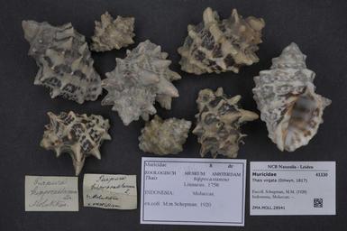 | Keywords: Naturalis Biodiversity Center - ZMA.MOLL.28941 - Thais virgata (Dillwyn, 1817) - Muricidae - Mollusc shell.jpeg artwork Dimensions artwork Document type Muricidae subfamily Rapaninae Thais Individual count Infraspecific epithet Infraspecific rank Institution Naturalis Kind of unit artwork Kind of unit specimen shell Life stage Indonesia; Moluccas Medium artwork Nomenclatural code Scale the width of the text on the species/QR-code label is 38 mm Occurrence ID page Neogastropoda Other fields Other versions artwork Permission license Naturalis donation CC-0 Mollusca Publication location Scientific name Thais virgata Dillwyn 1817 Scientific name authorship Dillwyn 1817 Source url http //bioportal naturalis nl Specific epithet virgata State or province Moluccas Subject keywords artwork Subject keywords publication Title artwork Title publication Type status Uploaded with GWToolset Naturalis_Biodiversity_Center_-_ZMA MOLL 28941_-_Thais_virgata_ Dillwyn _1817 _-_Muricidae_-_Mollusc_shell http //medialib naturalis nl/file/id/ZMA MOLL 28941/format/large Media donated by Naturalis Biodiversity Center Molluscs at Naturalis from the Zoölogisch Museum Amsterdam Thais virgata |