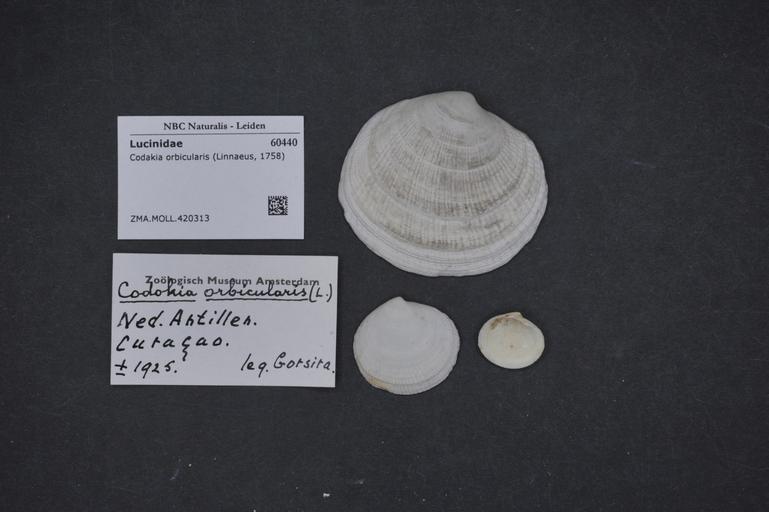 | Keywords: Naturalis Biodiversity Center - ZMA.MOLL.420313 - Codakia orbicularis (Linnaeus, 1758) - Lucinidae - Mollusc shell.jpeg artwork Dimensions artwork Document type Lucinidae subfamily Lucininae Codakia Individual count Infraspecific epithet Infraspecific rank Institution Naturalis Kind of unit artwork Kind of unit specimen shell Life stage Medium artwork Nomenclatural code Source institute Zoölogisch Museum Amsterdam Scale the width of the text on the species/QR-code label is 38 mm Occurrence ID page Other fields Other versions artwork Permission license Naturalis donation CC-0 Mollusca Publication location Scientific name Codakia orbicularis Linnaeus 1758 Scientific name authorship Linnaeus 1758 Source url http //bioportal naturalis nl Specific epithet orbicularis State or province Subject keywords artwork Subject keywords publication Title artwork Title publication Type status Uploaded with GWToolset Naturalis_Biodiversity_Center_-_ZMA MOLL 420313_-_Codakia_orbicularis_ Linnaeus _1758 _-_Lucinidae_-_Mollusc_shell http //medialib naturalis nl/file/id/ZMA MOLL 420313/format/large Molluscs at Naturalis from the Zoölogisch Museum Amsterdam Media donated by Naturalis Biodiversity Center Codakia orbicularis Codakia |