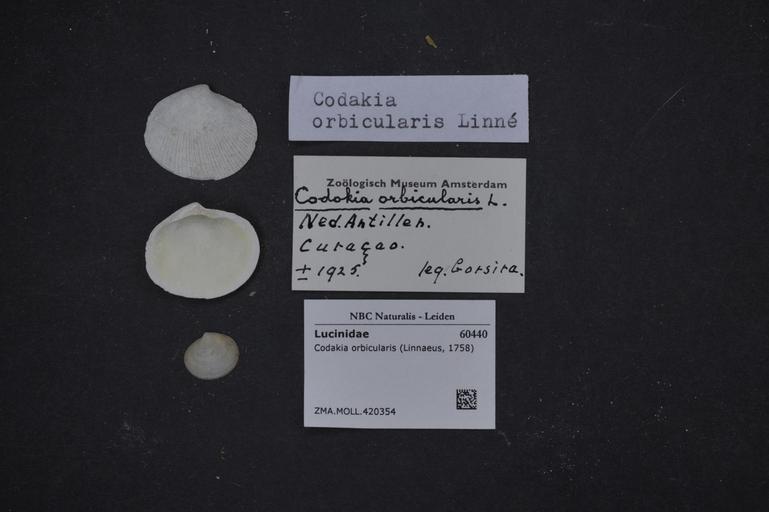 | Keywords: Naturalis Biodiversity Center - ZMA.MOLL.420354 - Codakia orbicularis (Linnaeus, 1758) - Lucinidae - Mollusc shell.jpeg artwork Dimensions artwork Document type Lucinidae subfamily Lucininae Codakia Individual count Infraspecific epithet Infraspecific rank Institution Naturalis Kind of unit artwork Kind of unit specimen shell Life stage Medium artwork Nomenclatural code Source institute Zoölogisch Museum Amsterdam Scale the width of the text on the species/QR-code label is 38 mm Occurrence ID page Other fields Other versions artwork Permission license Naturalis donation CC-0 Mollusca Publication location Scientific name Codakia orbicularis Linnaeus 1758 Scientific name authorship Linnaeus 1758 Source url http //bioportal naturalis nl Specific epithet orbicularis State or province Subject keywords artwork Subject keywords publication Title artwork Title publication Type status Uploaded with GWToolset Naturalis_Biodiversity_Center_-_ZMA MOLL 420354_-_Codakia_orbicularis_ Linnaeus _1758 _-_Lucinidae_-_Mollusc_shell http //medialib naturalis nl/file/id/ZMA MOLL 420354/format/large Molluscs at Naturalis from the Zoölogisch Museum Amsterdam Media donated by Naturalis Biodiversity Center Codakia orbicularis Codakia |
