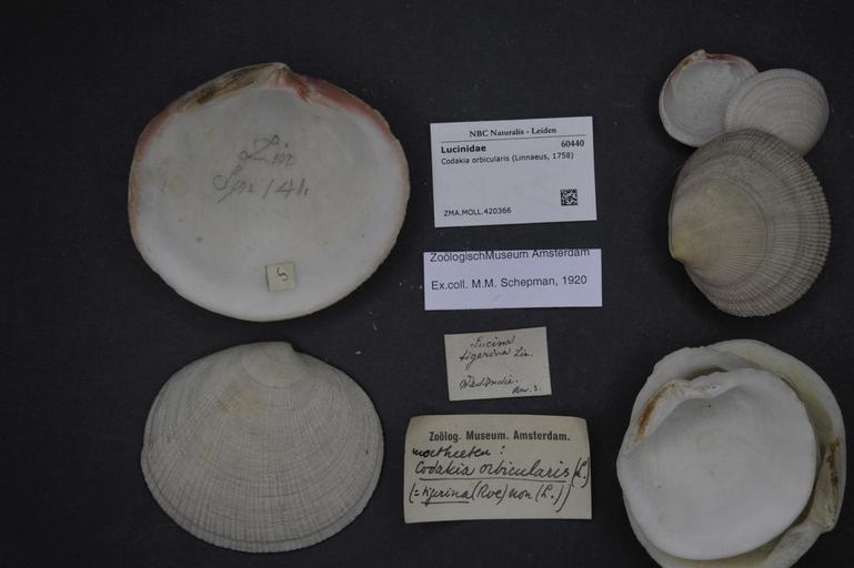 | Keywords: Naturalis Biodiversity Center - ZMA.MOLL.420366 - Codakia orbicularis (Linnaeus, 1758) - Lucinidae - Mollusc shell.jpeg artwork Dimensions artwork Document type Lucinidae subfamily Lucininae Codakia Individual count Infraspecific epithet Infraspecific rank Institution Naturalis Kind of unit artwork Kind of unit specimen shell Life stage Medium artwork Nomenclatural code Source institute Zoölogisch Museum Amsterdam Scale the width of the text on the species/QR-code label is 38 mm Occurrence ID page Other fields Other versions artwork Permission license Naturalis donation CC-0 Mollusca Publication location Scientific name Codakia orbicularis Linnaeus 1758 Scientific name authorship Linnaeus 1758 Source url http //bioportal naturalis nl Specific epithet orbicularis State or province Subject keywords artwork Subject keywords publication Title artwork Title publication Type status Uploaded with GWToolset Naturalis_Biodiversity_Center_-_ZMA MOLL 420366_-_Codakia_orbicularis_ Linnaeus _1758 _-_Lucinidae_-_Mollusc_shell http //medialib naturalis nl/file/id/ZMA MOLL 420366/format/large Molluscs at Naturalis from the Zoölogisch Museum Amsterdam Media donated by Naturalis Biodiversity Center Codakia orbicularis Codakia |