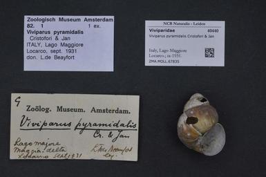 | Keywords: Naturalis Biodiversity Center - ZMA.MOLL.67835 - Viviparus pyramidalis Cristofori & Jan - Viviparidae - Mollusc shell.jpeg artwork Dimensions artwork Document type Viviparidae subfamily Viviparinae Viviparus Individual count Infraspecific epithet Infraspecific rank Institution Naturalis Kind of unit artwork Kind of unit specimen shell Life stage Italy Lago Maggiore Locarco ; ix-1931 stn new Medium artwork Nomenclatural code Source institute Zoölogisch Museum Amsterdam Scale the width of the text on the species/QR-code label is 38 mm Occurrence ID page Other fields Other versions artwork Permission license Naturalis donation CC-0 Mollusca Publication location Scientific name Viviparus pyramidalis Cristofori Jan Scientific name authorship Cristofori Jan Source url http //bioportal naturalis nl Specific epithet pyramidalis State or province Subject keywords artwork Subject keywords publication Title artwork Title publication Type status Uploaded with GWToolset Naturalis_Biodiversity_Center_-_ZMA MOLL 67835_-_Viviparus_pyramidalis_Cristofori_ _Jan_-_Viviparidae_-_Mollusc_shell http //medialib naturalis nl/file/id/ZMA MOLL 67835/format/large Molluscs at Naturalis from the Zoölogisch Museum Amsterdam Media donated by Naturalis Biodiversity Center Viviparus pyramidalis Viviparus |