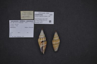 | Keywords: Naturalis Biodiversity Center - ZMA.MOLL.72317 - Vexillum vulpecula (Linnaeus, 1758) - Costellariidae - Mollusc shell.jpeg artwork Dimensions artwork Document type Costellariidae Vexillum Individual count Infraspecific epithet Infraspecific rank Institution Naturalis Kind of unit artwork Kind of unit specimen shell Life stage Indonesia Maluku Moluccas lat -3 72 lon 128 2 Medium artwork Nomenclatural code Collection remarks Moll Source institute Zoölogisch Museum Amsterdam Scale the width of the text on the species/QR-code label is 38 mm Occurrence ID page Neogastropoda Other fields Other versions artwork Permission license Naturalis donation CC-0 Mollusca Publication location Scientific name Vexillum vulpecula Linnaeus 1758 Scientific name authorship Linnaeus 1758 Source url http //bioportal naturalis nl Specific epithet vulpecula State or province Maluku Moluccas Subject keywords artwork Subject keywords publication Title artwork Title publication Type status Uploaded with GWToolset Naturalis_Biodiversity_Center_-_ZMA MOLL 72317_-_Vexillum_vulpecula_ Linnaeus _1758 _-_Costellariidae_-_Mollusc_shell http //medialib naturalis nl/file/id/ZMA MOLL 72317/format/large Molluscs at Naturalis from the Zoölogisch Museum Amsterdam Media donated by Naturalis Biodiversity Center Vexillum vulpecula Vexillum |
