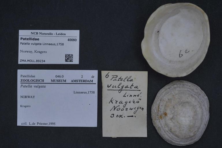| Keywords: Naturalis Biodiversity Center - ZMA.MOLL.89234 - Patella vulgata Linnaeus, 1758 - Patellidae - Mollusc shell.jpeg artwork Dimensions artwork Document type Patellidae subfamily Patellinae Patella Individual count Infraspecific epithet Infraspecific rank Institution Naturalis Kind of unit artwork Kind of unit specimen shell Life stage Norway Kragero Medium artwork Nomenclatural code Source institute Zoölogisch Museum Amsterdam Scale the width of the text on the species/QR-code label is 38 mm Occurrence ID page Other fields Other versions artwork Permission license Naturalis donation CC-0 Mollusca Publication location Scientific name Patella vulgata Linnaeus 1758 Scientific name authorship Linnaeus 1758 Source url http //bioportal naturalis nl Specific epithet vulgata State or province Subject keywords artwork Subject keywords publication Title artwork Title publication Type status Uploaded with GWToolset Naturalis_Biodiversity_Center_-_ZMA MOLL 89234_-_Patella_vulgata_Linnaeus _1758_-_Patellidae_-_Mollusc_shell http //medialib naturalis nl/file/id/ZMA MOLL 89234/format/large Molluscs at Naturalis from the Zoölogisch Museum Amsterdam Media donated by Naturalis Biodiversity Center Patella vulgata Patella |