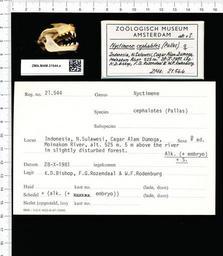 | Keywords: Naturalis Biodiversity Center - ZMA.MAM.21544.a lat - Nyctimene cephalotes - skull.jpeg artwork Dimensions artwork Document type Nyctimene Individual count 1 Infraspecific epithet Infraspecific rank Institution Naturalis Kind of unit artwork Kind of unit specimen skull Life stage Indonesia N Sulawesi Cagar Alam Dumoga Moinakom River 525m Medium artwork Nomenclatural code Occurrence ID page Other fields Other versions artwork Permission license Naturalis donation CC-0 Publication location Scientific name Nyctimene cephalotes Scientific name authorship female Source url http //bioportal naturalis nl Specific epithet cephalotes State or province Subject keywords artwork Subject keywords publication Title artwork Title publication Type status Uploaded with GWToolset Naturalis_Biodiversity_Center_-_ZMA MAM 21544 a_lat_-_Nyctimene_cephalotes_-_skull http //medialib naturalis nl/file/id/ZMA MAM 21544 a_lat/format/large Mammals at Naturalis from the Zoölogisch Museum Amsterdam Media donated by Naturalis Biodiversity Center Nyctimene cephalotes Nyctimene |