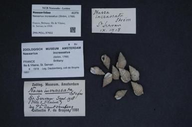 | Keywords: Naturalis Biodiversity Center - ZMA.MOLL.97602 - Nassarius incrassatus (Stroem, 1768) - Nassariidae - Mollusc shell.jpeg artwork Dimensions artwork Document type Nassariidae subfamily Nassariinae Nassarius Individual count Infraspecific epithet Infraspecific rank Institution Naturalis Kind of unit artwork Kind of unit specimen shell Life stage France Brittany Ille Vilaine St Servan; ix-1918 Medium artwork Nomenclatural code Moll Source institute Zoölogisch Museum Amsterdam Scale the width of the text on the species/QR-code label is 38 mm Occurrence ID page Other fields Other versions artwork Permission license Naturalis donation CC-0 Mollusca Publication location Scientific name Nassarius incrassatus Stroem 1768 Scientific name authorship Stroem 1768 Source url http //bioportal naturalis nl Specific epithet incrassatus State or province Brittany Subject keywords artwork Subject keywords publication Title artwork Title publication Type status Uploaded with GWToolset Naturalis_Biodiversity_Center_-_ZMA MOLL 97602_-_Nassarius_incrassatus_ Stroem _1768 _-_Nassariidae_-_Mollusc_shell http //medialib naturalis nl/file/id/ZMA MOLL 97602/format/large Molluscs at Naturalis from the Zoölogisch Museum Amsterdam Media donated by Naturalis Biodiversity Center Nassarius incrassatus Nassarius |