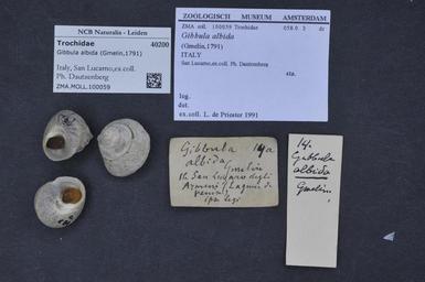 | Keywords: Naturalis Biodiversity Center - ZMA.MOLL.100059 - Gibbula albida (Gmelin, 1791) - Trochidae - Mollusc shell.jpeg artwork Dimensions artwork Document type Trochidae subfamily Gibbulinae Gibbula Individual count Infraspecific epithet Infraspecific rank Institution Naturalis Kind of unit artwork Kind of unit specimen shell Life stage Italy San Lucarno ex coll Ph Dautzenberg Medium artwork Nomenclatural code coll Scale the width of the text on the species/QR-code label is 38 mm Occurrence ID page Other fields Other versions artwork Permission license Naturalis donation CC-0 Mollusca Publication location Scientific name Gibbula albida Gmelin 1791 Scientific name authorship Gmelin 1791 Source url http //bioportal naturalis nl Specific epithet albida State or province Subject keywords artwork Subject keywords publication Title artwork Title publication Type status Uploaded with GWToolset Naturalis_Biodiversity_Center_-_ZMA MOLL 100059_-_Gibbula_albida_ Gmelin _1791 _-_Trochidae_-_Mollusc_shell http //medialib naturalis nl/file/id/ZMA MOLL 100059/format/large Media donated by Naturalis Biodiversity Center Molluscs at Naturalis from the Zoölogisch Museum Amsterdam Gibbula albida Gibbula |