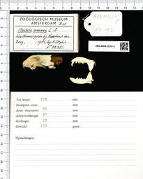 | Keywords: Naturalis Biodiversity Center - ZMA.MAM.22351.a lat - Mustela erminea Linnaeus - skull.jpeg artwork Dimensions artwork Document type Mustela Individual count 1 Infraspecific epithet Infraspecific rank Institution Naturalis Kind of unit artwork Kind of unit specimen skull Life stage Netherlands Noord Holland Nederhorst den Berg Horstermeerpolder Medium artwork Nomenclatural code Occurrence ID page Other fields Other versions artwork Permission license Naturalis donation CC-0 Publication location Scientific name Mustela erminea Linnaeus Scientific name authorship Linnaeus male Source url http //bioportal naturalis nl Specific epithet erminea State or province Noord Holland Subject keywords artwork Subject keywords publication Title artwork Title publication Type status Uploaded with GWToolset Naturalis_Biodiversity_Center_-_ZMA MAM 22351 a_lat_-_Mustela_erminea_Linnaeus_-_skull http //medialib naturalis nl/file/id/ZMA MAM 22351 a_lat/format/large Mammals at Naturalis from the Zoölogisch Museum Amsterdam Media donated by Naturalis Biodiversity Center Mustela erminea Mustela |
